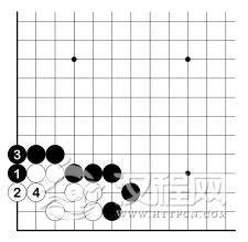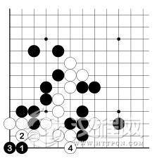 白 1、黑 2 后,白 3 再爬一手,黑 4只有长。