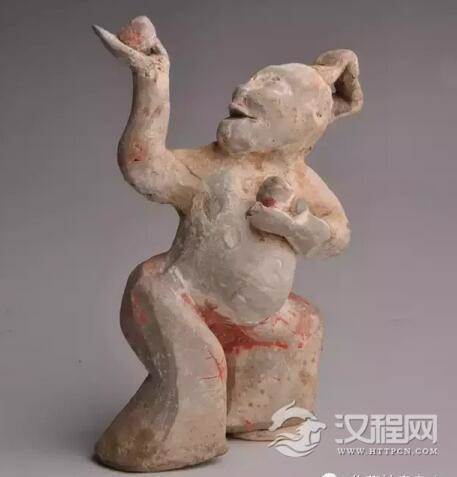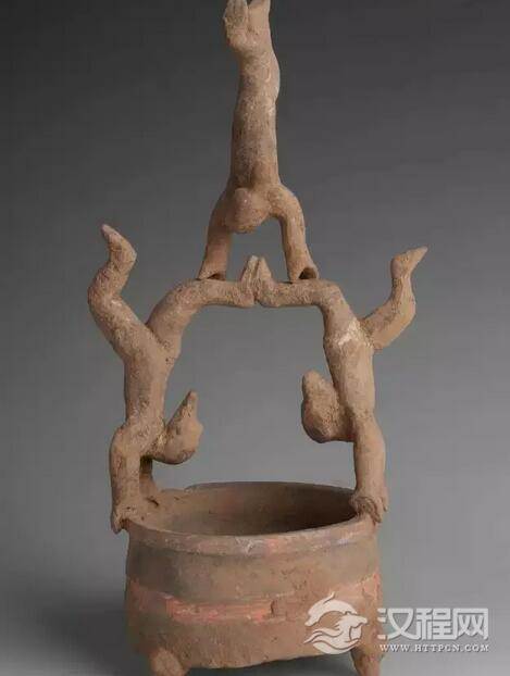 汉代 彩绘倒立杂技俑陶奁