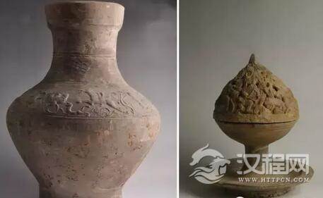 左:汉 狩猎纹陶壶 右:汉 狩猎纹陶熏炉