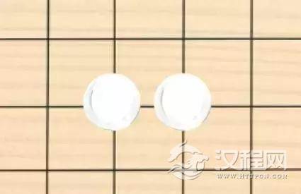 如果白子下在这个位置,就会堵住这两颗黑子全部的“气”,并将其“吃掉”: