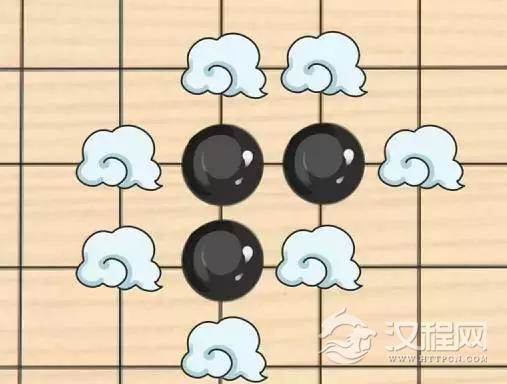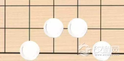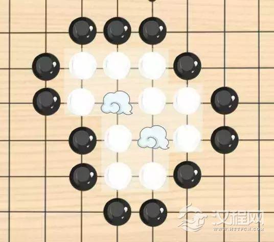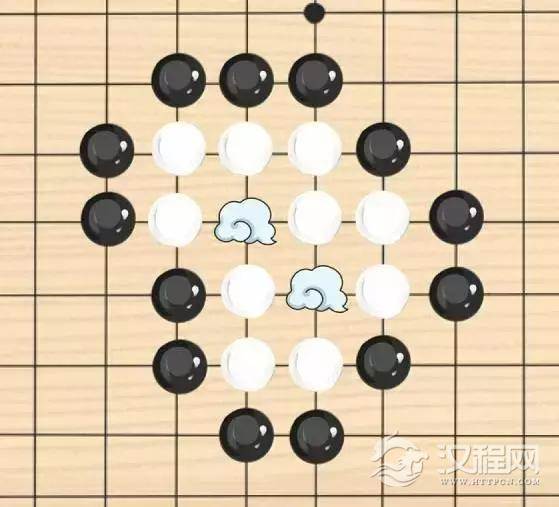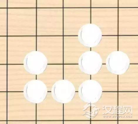了解了以上的规则,如果你足够聪明,你可能已经想到了一些特定的落子布局。比如下图中的白棋: