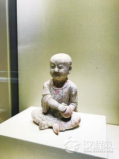 这尊宋代抱球童子俑是成都体育学院博物馆的镇馆之宝,也出自河南一带。别看主角是个几岁小孩,他的手里却大有文章。