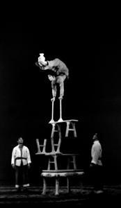 早在汉代石刻中就有顶碗倒立的人物造型。但千百年来,顶碗是专属于男人的,而且没有太多技术含量,往往是演员头顶瓷碗跑圆场。
