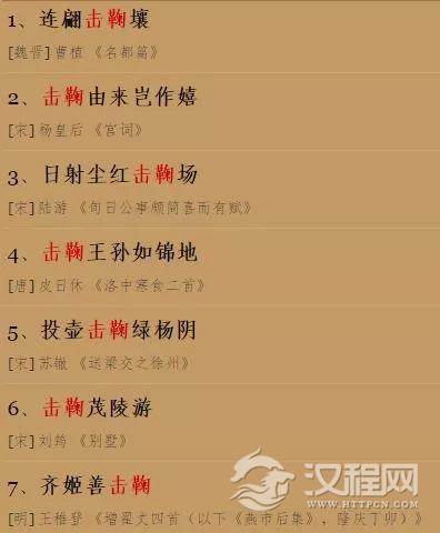 中国古诗里的击鞠非常多的,像曹植的《名都篇》、陆游的《旬日公事颇简喜而有赋》、刘筠的《别墅》。比较著名的就是皮日休的:“击鞠王孙如锦地,斗鸡公子似花衣”了