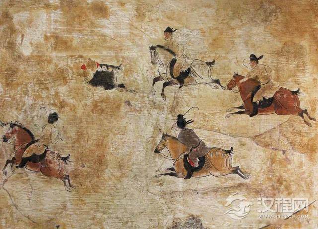 击鞠 中国古代马球运动。又称“击球”、“打球”。是骑在马上用球杖将球击入球门而进行比赛的一种球戏。击鞠起源于何时何地,迄今尚无定论。唐代和宋辽金元时期击鞠特别盛行,它既是练兵手段,又是宫中一项重要的礼仪和娱乐活动。其正规比赛场地广阔平坦,周长“千步”,三面环以短垣,一面靠近殿堂。场上设有两个球门。参赛者分成两队(人数不拘),身着不同颜色服装,乘马持杖争逐击球,以击球入对方球门次数的多少定胜负。球呈红色,圆形,大小如拳,用质轻坚韧的木材制成;球杖数尺,顶端部分弯如弦月。比赛中有鼓乐助兴,唐代不少帝王和贵胄子弟爱好击鞠,有的甚至奢靡无度,“昼夜酣饮作乐,燃十围之烛以击球,一烛费钱数万”(《资治通鉴》卷二七一)。