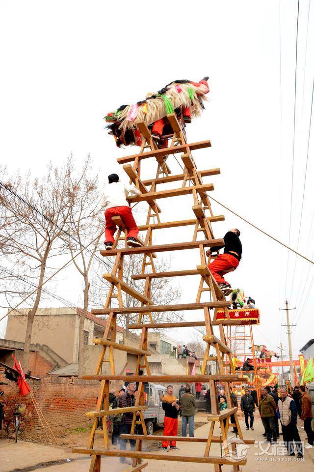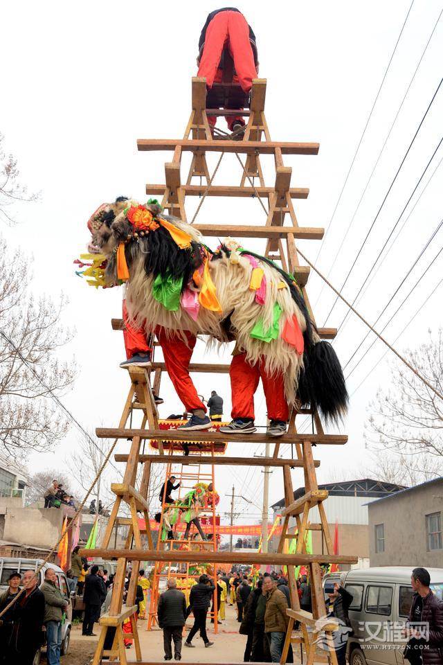 板凳山上舞狮子!河南长葛这个地方的人舞狮表演可与南方媲美