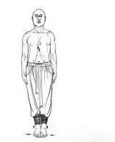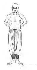 1.并步正身直立,两臂自然垂于体侧,自然呼吸,双目下视。(图1)