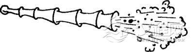 飞火枪虽能喷焰灼敌,但还不能用发射物击杀敌军。南宋开庆元年(公元1259年),寿春府(今安徽寿县)地方的抗金军民,制成了能用发射物直接击杀敌军的突火枪(见图20)。此枪以巨竹为枪筒,筒内装填火药与子窠〔ke科〕(一种最早的弹丸)。使用时,士兵点燃火药,射出子窠,击杀敌人,响声传闻甚远。由于这种枪是在火药燃烧后气体突然膨胀而将弹丸射出的,因而被称为突火枪。突火枪已经具备管形射击火器的三个条件:一是枪筒,可用它装填火药与弹丸;二是火药,可用它将弹丸射出;三是子窠,可用它击杀敌人。突火枪创制之事,历来受到各国火器史研究者的重视,称道它是后世枪炮的鼻祖。
