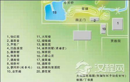 之后,陈林又根据小说前八十回贾政一行人逛大观园的路线,推算出潇湘馆、蘅芜院、沁芳闸桥和怡红园等在大观园中的大体位置。并确定小说中林黛玉居住的潇湘馆肯定是在大观园的西南角上,而省亲别院则在大观园的南北向中轴线上。