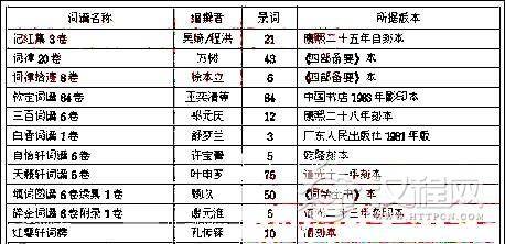 与词的创作实践和理论研究的繁荣中兴相呼应,清代对词谱词律的整理与编著工作也形成发达与集成之势,这对周邦彦词在清代的传播也起到了积极的推动作用。兹选取清代编著的几种主要的词谱词律加以考察,列表如下: