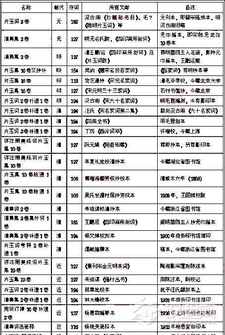 表2 元、明、清及近现代周邦彦主要词集版本一览表