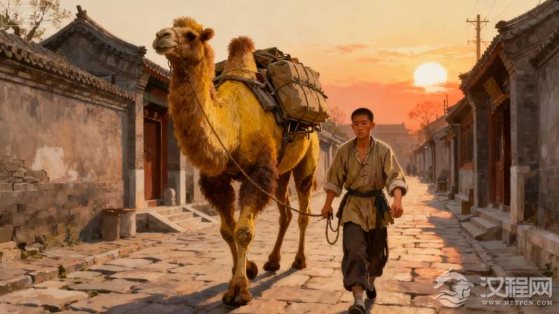 祥子与骆驼的联结,始于一场荒诞的“置换”。他失去了辛苦挣来的车,却在混乱中牵回三匹骆驼。这并非命运的补偿,而是一个残酷的象征:他失去了代表个人奋斗梦想的“车”,得到的,是注定要背负重担的“骆驼”身份。从此,他成了“骆驼祥子”——他不再是人,而是一种功能,一种背负苦难的载体。