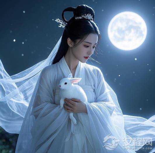 嫦娥,这位清冷的月宫仙子,恰似高悬夜空的那轮冰洁明月,散发着幽冷而绝美的光晕。她身着一袭素白绫罗,身姿轻盈得仿佛能随风飘起,肌肤赛雪,双眸恰似幽邃的深潭,藏着无尽的孤寂与哀愁。往昔,为了不让仙丹落入恶人之口,她决然吞下药丸,悠悠飘向天际,自此独守那清冷的月宫。在广寒宫中,唯有玉兔相依相伴,她的每一回转身,每一次望向人间的目光,都带着一种拒人千里却又令人心生怜爱的美感,就像一朵绽放在冰天雪地中的雪莲,清冷而高洁。