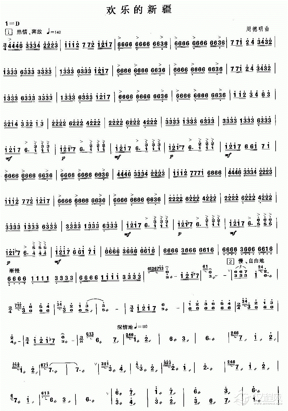 洗衣歌(刘明源改编)柳琴琵琶分谱简谱