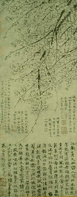 在文人画兴起的元代,绘画已发展成为文人寄托情趣的艺术。才气横溢的文人除画物寓意外,还写诗填词于画上,解释画意,抒发情感,典雅含蓄,意趣无穷;有的画家更为直露,索性摆脱诗词格律的束缚,信笔在画上提句跋文,直抒胸臆。书法或奔放,或秀逸,或朴拙,或工整,与绘画笔墨风格相融,起到图文互补、增强艺术效果的作用。此时治印多用圆珠文;闲章、名印,或白文,或朱文;形制或方或圆,或长或扁,或肖像,或形物;有的押脚,有的起首,在素纸绢绫上与书法黑红相映,虚实互见,赏心悦目,给绘画增添了妙趣不尽的书卷之气。