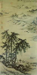 元代中晚期活动于江南的黄公望(1269年-1354年)、王蒙(?-1385年)、倪瓒(1301年-1374年)、吴镇(1280年-1354年),因皆在笔墨技法上成就显著,画山水以寄托清高避世的情感,对文人山水画典范的形成作出贡献,而在画史上被称作“元四家”。