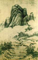 吴镇出身贫寒,孜孜绘艺,不求闻达。所作山水、人物、花鸟,以湿笔见长,而淳朴天真,充满野逸之趣,以寄托自由不羁、归隐江湖的志向。有《溪山高隐图》、《渔夫图》等。