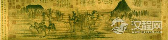 黄公望出身小吏,所作山水以疏体见长,用笔简远,若不经意,平淡天真之趣溢于画卷,流露清高隐逸的思想。他的《富春山居图》,纵33厘米,横长630厘米,村舍隐约,渔舟出没,林峦森秀,笔墨苍简,颇得富春江两岸烟波浩渺、坡峦清润的情趣,被誉为“画中《兰亭序》”。