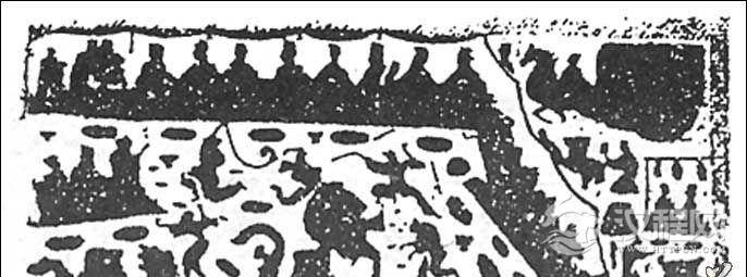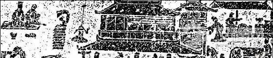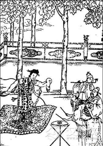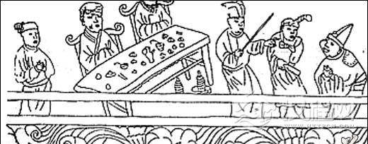 2、殿庭式演出,是贵族富民在家中演出百戏的又一种形式。表演场所由屋内移到屋外院子里,通常是主人坐屋子中央,两边排列宾客侍从伎人在庭院表演。