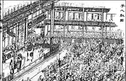 酒楼演唱兴盛于宋元时期。这一时期主要的演出场地还是勾栏,酒楼只是清唱场所。明代中期勾栏衰败,酒楼才成为城市演戏的固定地点。