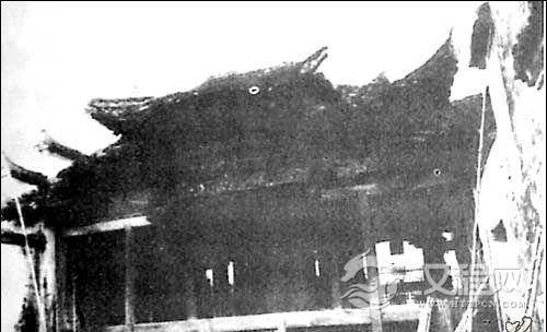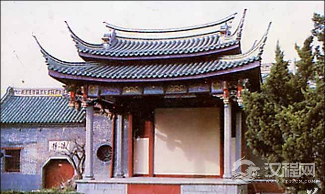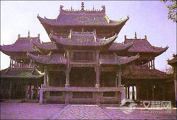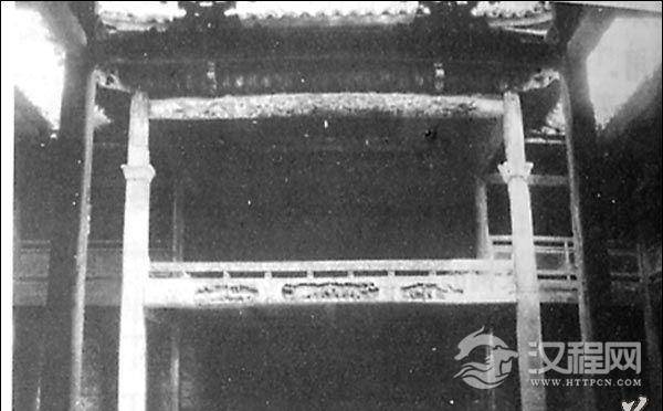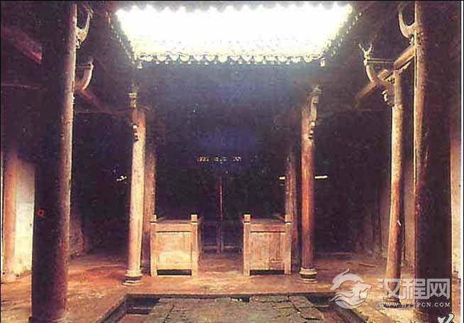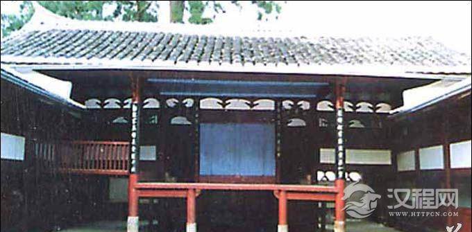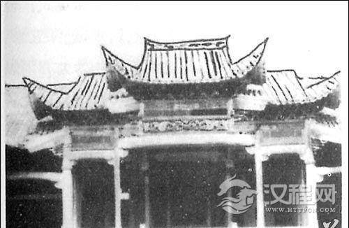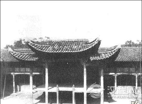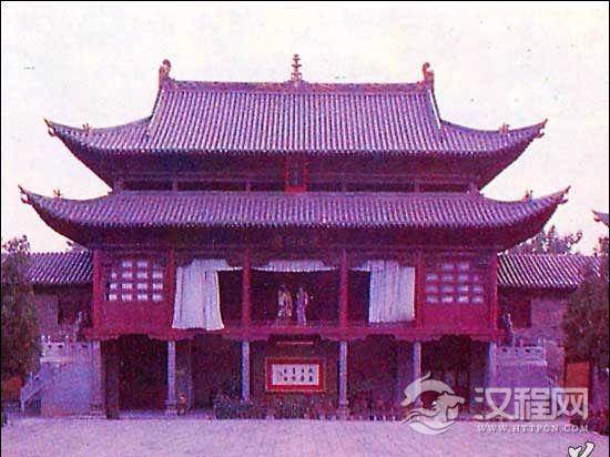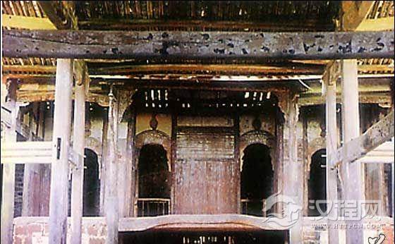 单檐歇山式建筑。内外八柱,两边有观剧楼。