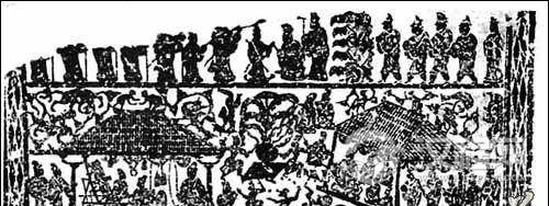 平乐观是汉代长安未央宫里的楼阙,也可以说是最早的戏楼。“大坛”上有华盖,是皇帝看戏的地方。“设秘戏以示人”,说明戏楼建在广场上,很高大。从现存的记载广场演出的画像石我们可以领略当时的气概。