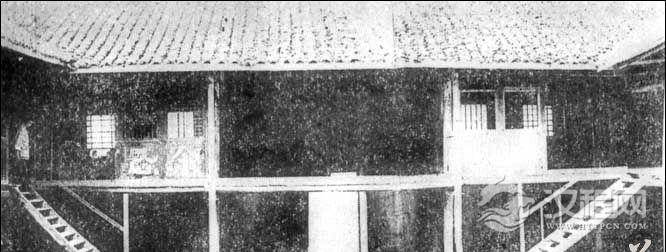 民国江西督军李纯祠堂建筑的一部分,戏台为伸出式,台口有护栏,台两侧为台阶。