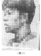 每一个方格内的“基调”注意相互比较,定出最暗的调子在哪个(或几个)方格内;最亮的调子在哪个方格内。在此基础上,严格把握整体调子的关系。最后,把制作完的“基调分割”作品放到远处与范画进行比较,做最后的调整。这样,一幅黑白调子切割的素描就完成了(图3)。当学生学会了用“基调”去概括丰富的层次的时候,就可以着手进行切面写生练习了。切面写生练习的方法步骤如下:切面写生练习的整个过程前半部分的方法与常规素描写生基本相同。只是在练习的后半期才在画面的形体色调基础上切割出各种方的面来。
