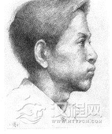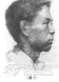 最后,经过适当的修改使画面中的形象最终达到与模特儿在基本形体和人物形象特征上保持一致。切面素描头像练习如果用单色水粉(或油画)颜料,可以起到事半功倍的效果。因为水粉(或油画)的笔触能模仿雕塑刀的效果。再加上大号的画笔使色调一次性定位。这与雕塑的一刀下去立见形体是一致的。这更有助于使学生完善他们的整体的作画步骤。