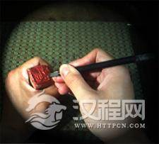 印泥的使用:鈐印時,左手持印泥盒右手將印面輕輕擊打在印泥上蘸均,切忌把印面注印泥上擠壓。