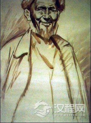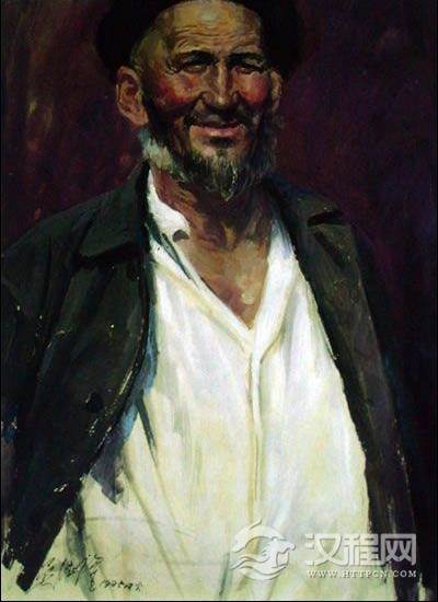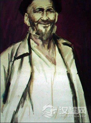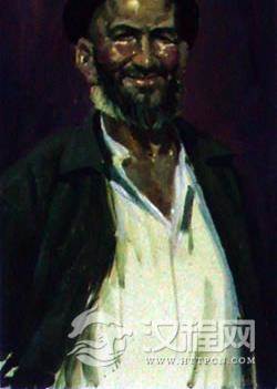 以一位新疆老人的胸像作为例子,说明作画步骤。老人形象朴素健壮、个性开朗、肤色红润,背景是含灰的红紫深色调,与主体人物形成对比,使人像鲜明突出。