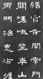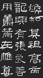 我们今天所能见到的汉代隶书,都是凭当时刻在石碑上而保留下来的。可惜当时书丹的作者没有留下他们的姓名,后人只好以某碑或某碑铭文内容为其命名,例如:《乙瑛碑》、《史晨碑》、《礼器碑》、《孔宙碑》、《石门颂》、《华山碑》、《曹全碑》、《西狭颂》、《张景碑》、《张迁碑》等等。