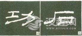 字形、笔画偏斜的字,要在点画偏斜的字,要在点画形态、中心线、支撑点上下工夫,掌握好重心,偏中求正,使字的形体产生玲动态势,给人以活泼之感。
