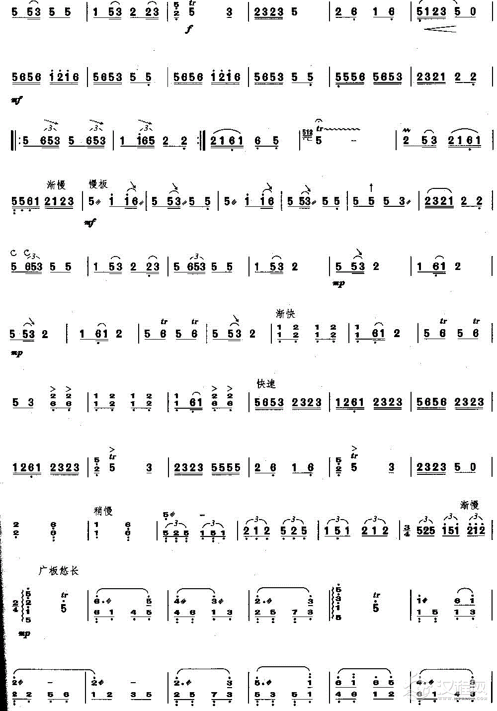 曲谱大全变调【莽原情】(高音板胡独奏曲)