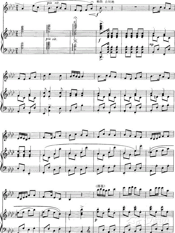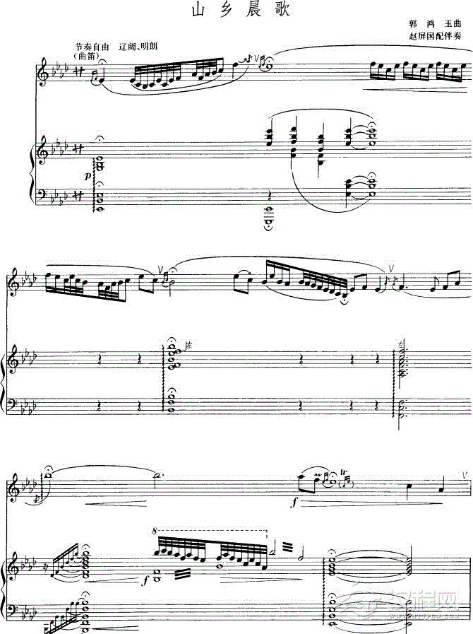 山乡晨歌-钢琴伴奏-五线谱