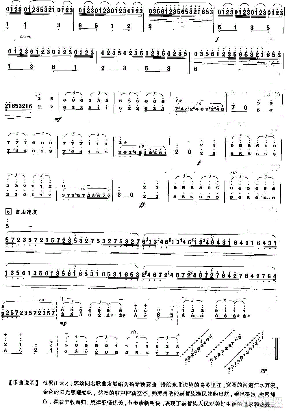 简介: 乌苏里船歌,扬琴考级八级曲目