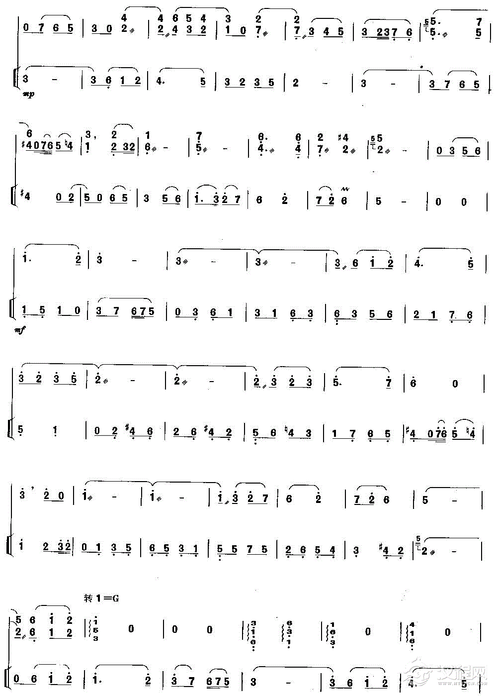 曲谱大全G调上把位练习