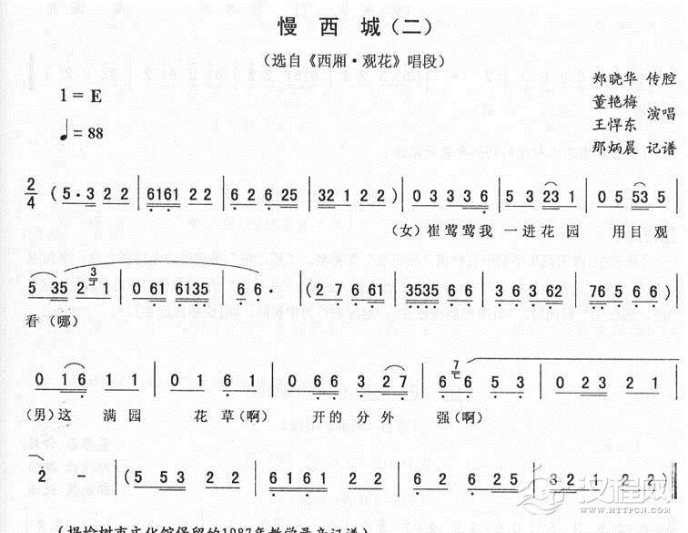 戏曲曲谱慢西城(一)_<双锁山>二人转