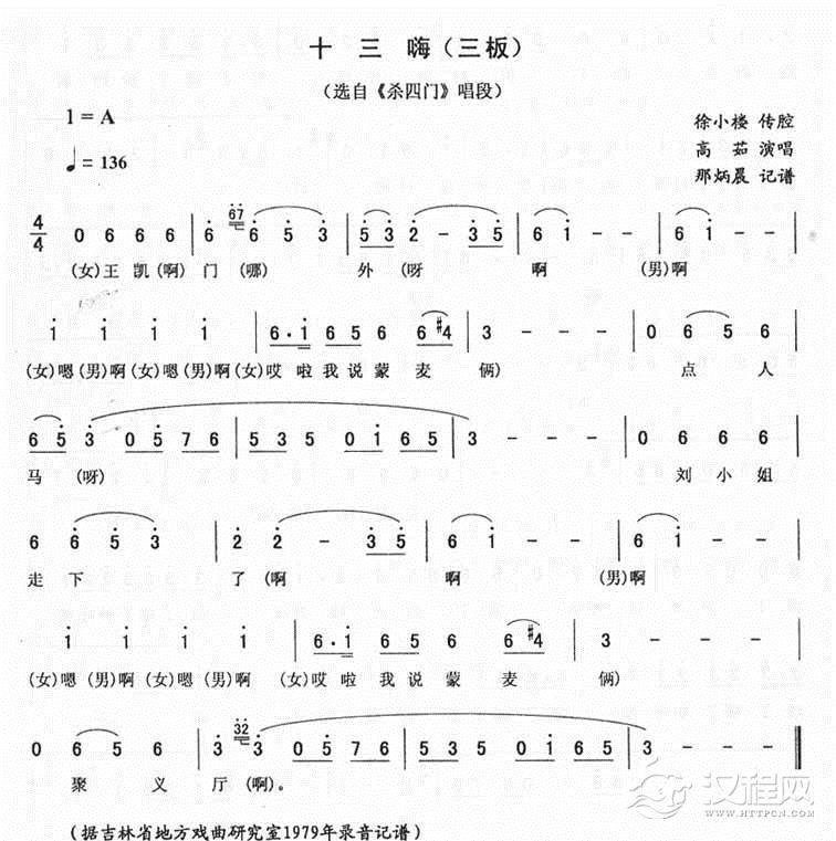 戏曲曲谱十三嗨(二板)_<杀四门>二人转