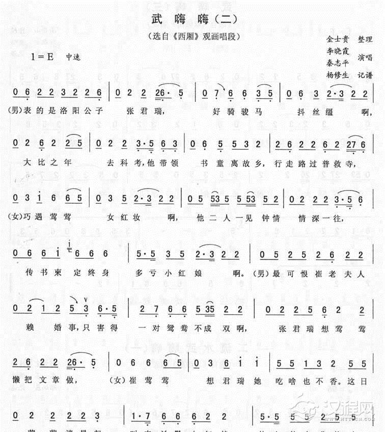 戏曲曲谱软口武嗨嗨_<九子图>二人转