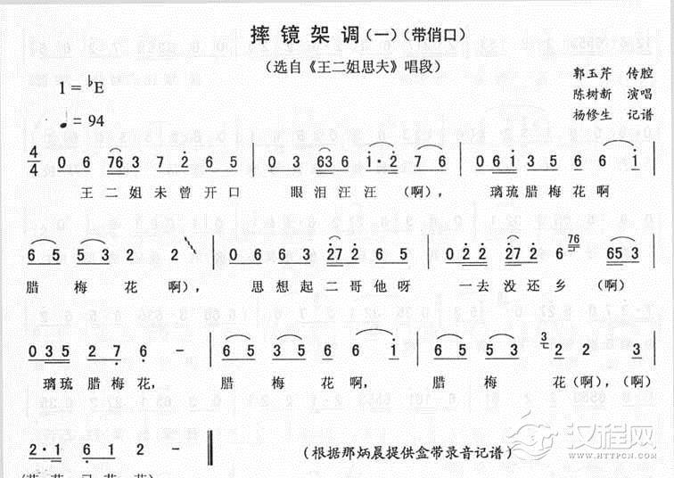 戏曲曲谱摔镜架调(二)_<洪月娥做梦>二人转