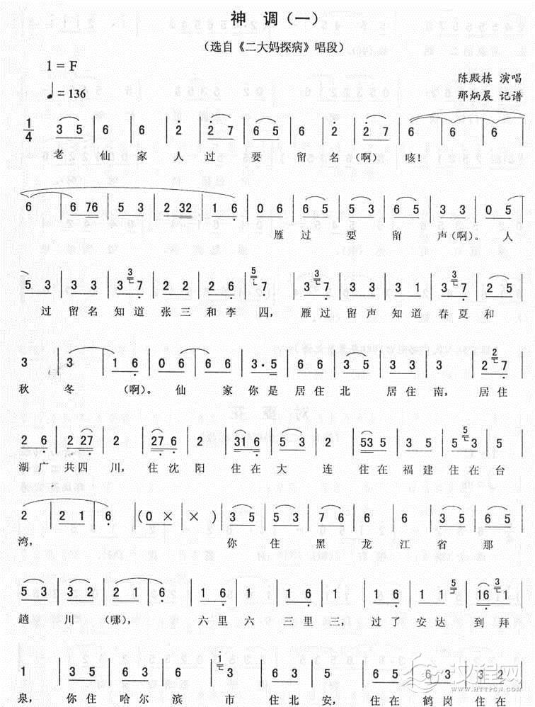 戏曲曲谱慢西城(一)_<双锁山>二人转