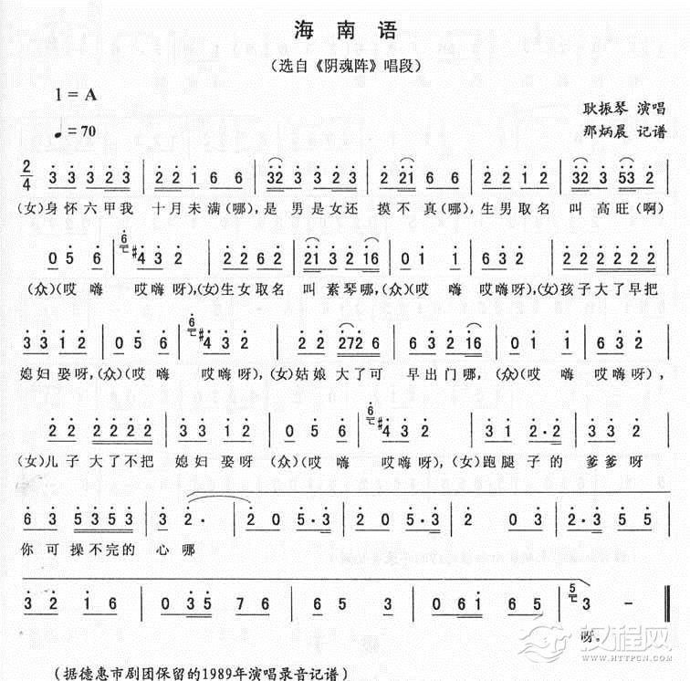 戏曲曲谱顶嘴:双锁山唱段(二人转)