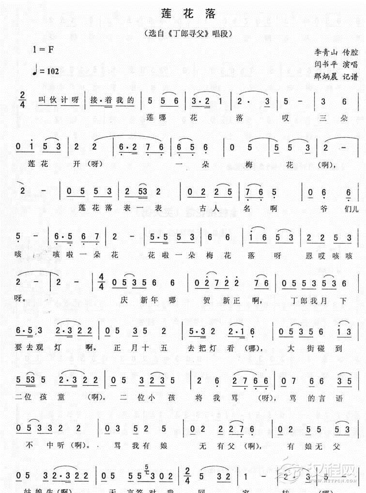 戏曲曲谱莲花落调:寒江唱段二人转