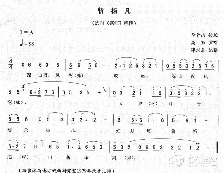 戏曲曲谱传令:寒江唱段(二人转)