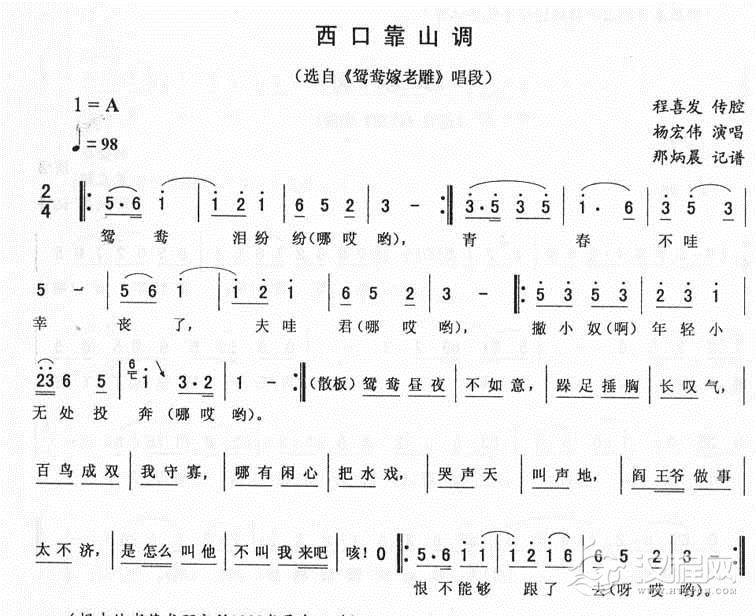 戏曲曲谱反西凉:寒江唱段(二人转)