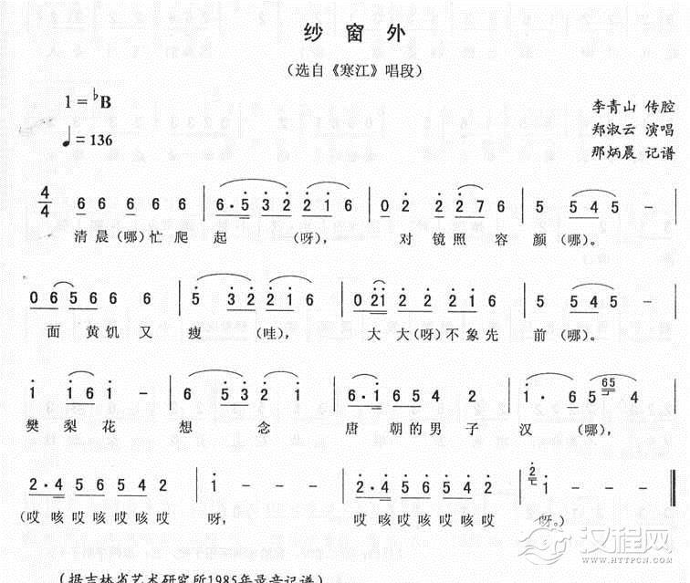戏曲曲谱八不合:寒江唱段(二人转)