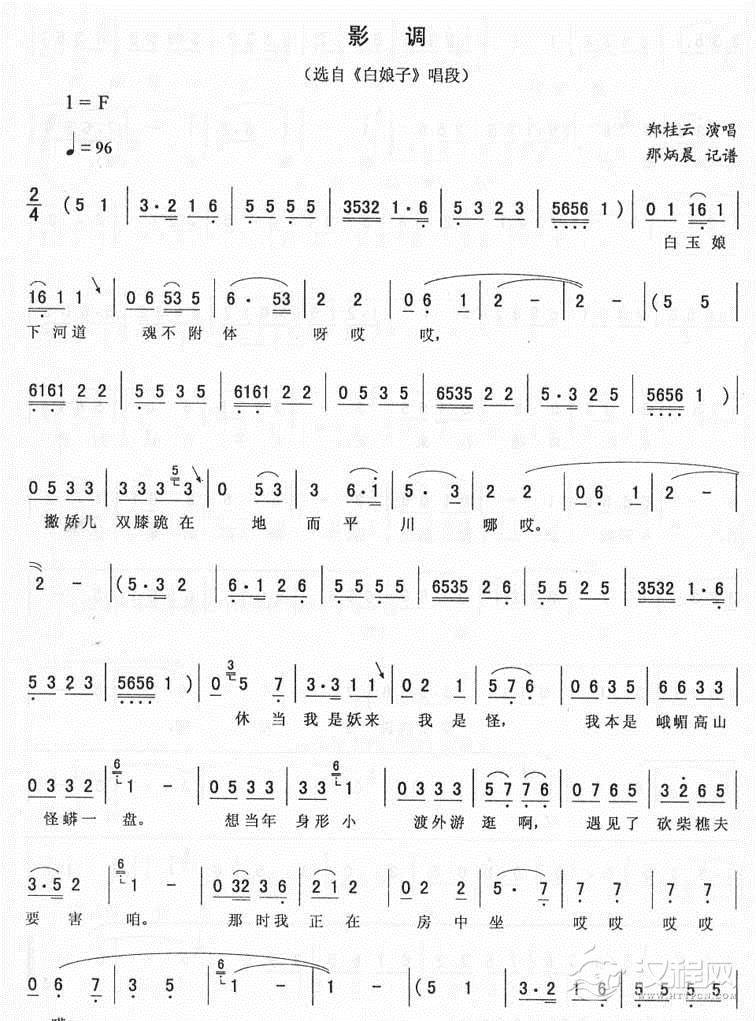 戏曲曲谱影绑:寒江唱段(二人转)