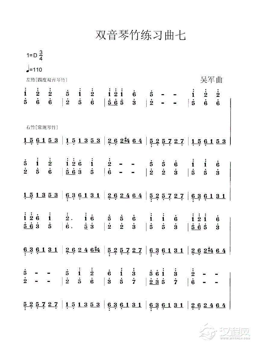 曲谱大全扬琴双音琴竹练习曲30首之十