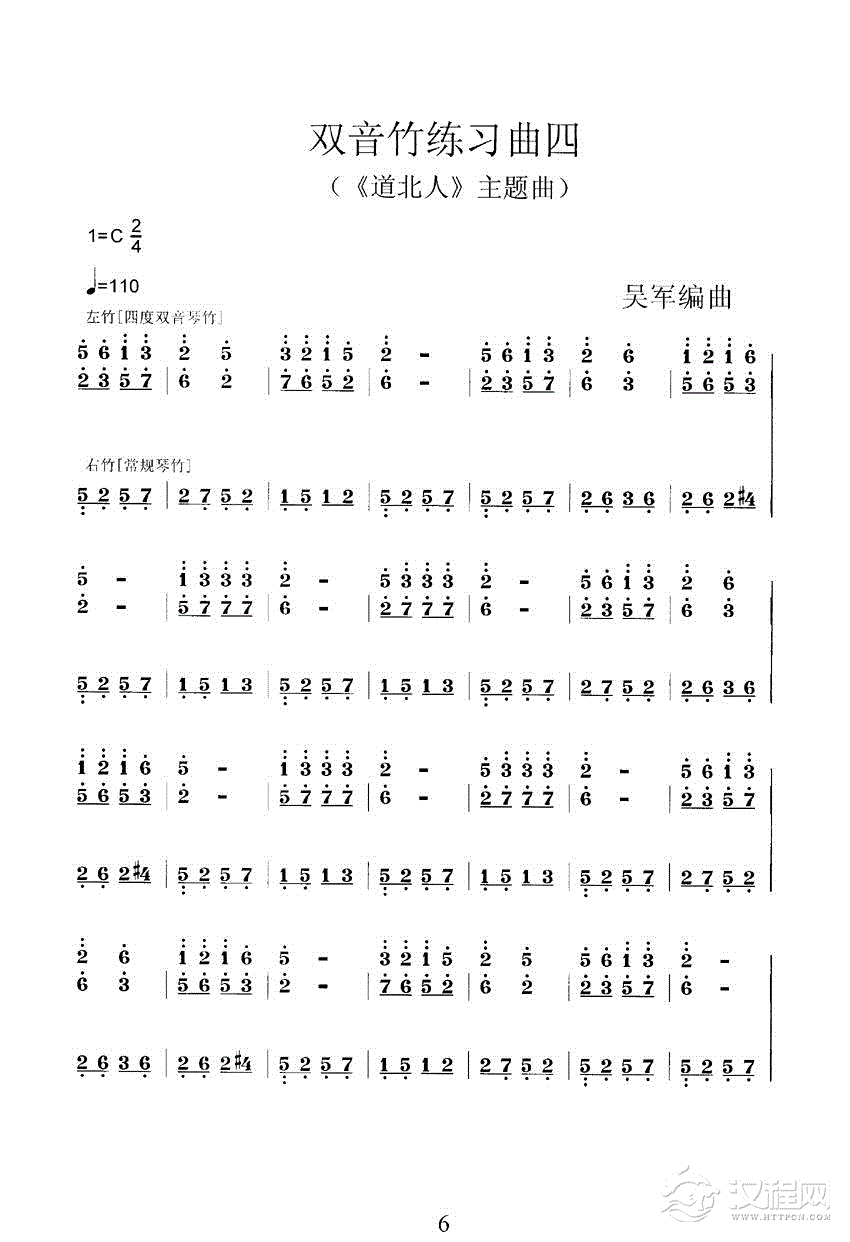 曲谱大全扬琴双音琴竹练习曲30首之五